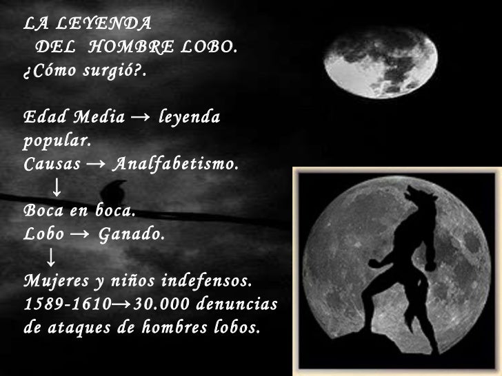 Leyenda del hombre lobo Los hombres lobos son criaturas que sufren una mutación por medio de una mordedura. Al nacer el niño es pálido delgada y tiene los oídos un poco largos. Por lo que en las noches de luna llena en días viernes y martes sufre una transformación física que.